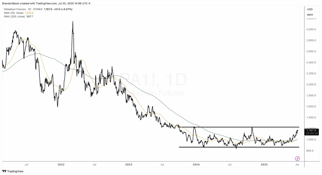 PGMs have ripped since then … platinum and palladium are up 107% and 66%, respectively. Even VALT is up 124% since that July 2024 Long Pull Report.