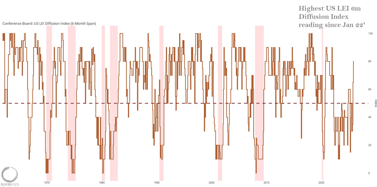 11. Our reflation hypothesis that we’ve held since last Summer continues to be validated. Here we have the Conference Board’s US LEI 6m diffusion index putting in its highest reading since Jan 22’.