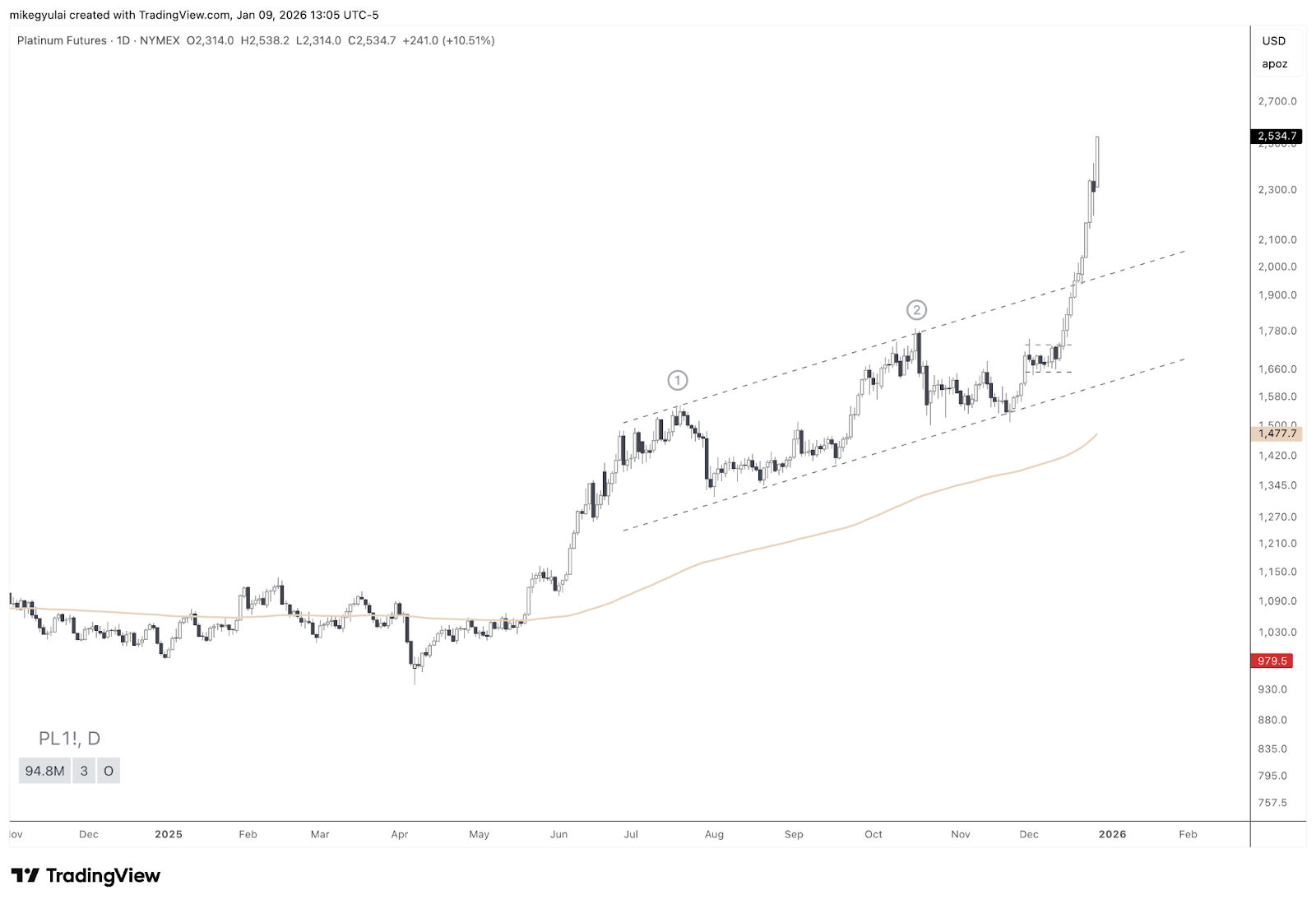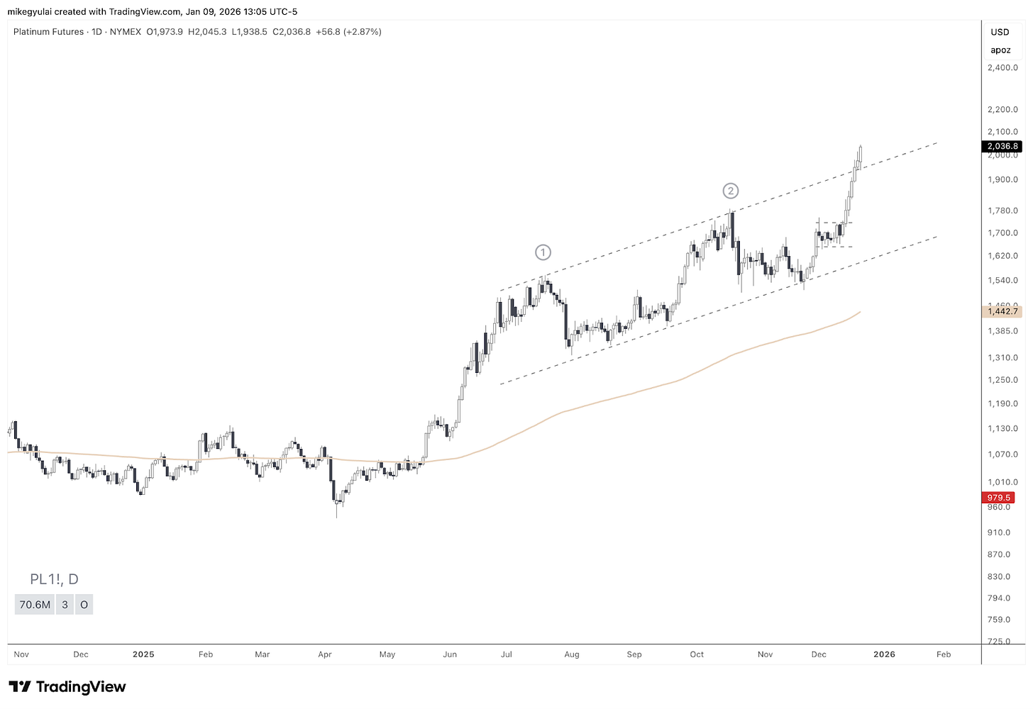In the last issue of This Infinite Game before the holiday break, I showcased a beautiful rising channel in Platinum, and pointed out that price was attempting to break out.