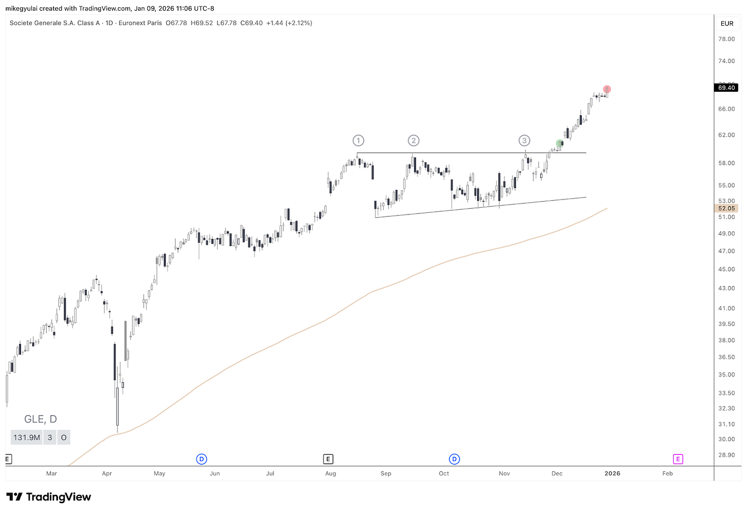 Right before the end of the year, Collective member Mitul Patel shared a picture-perfect breakout trade in the Comm Center. While Euronext Paris is not part of my personal screening universe, Société Générale (GLE) fits all the criteria I look for in a breakout candidate: