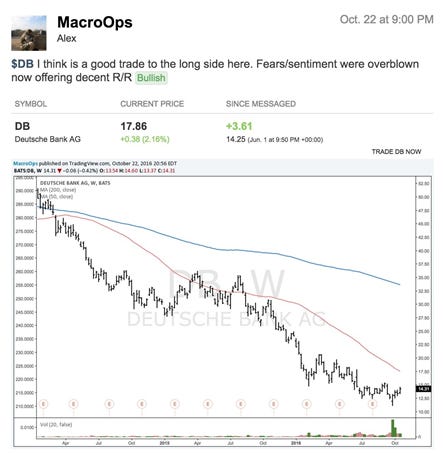 What if the market regulators (ie, central bankers and government officials) who are reading the same doomsday news as you, become compelled to act? What if they promise to backstop and recapitalize the bank? Clearly there were many alternate and equally probable future outcomes for DB other than its inevitable blow up.