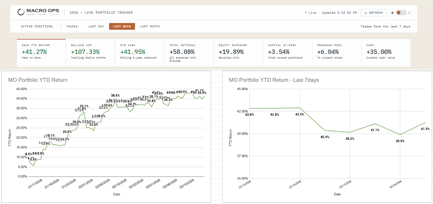 1. Portfolio fell -150bps on the week, sitting at +41.3% on the year.