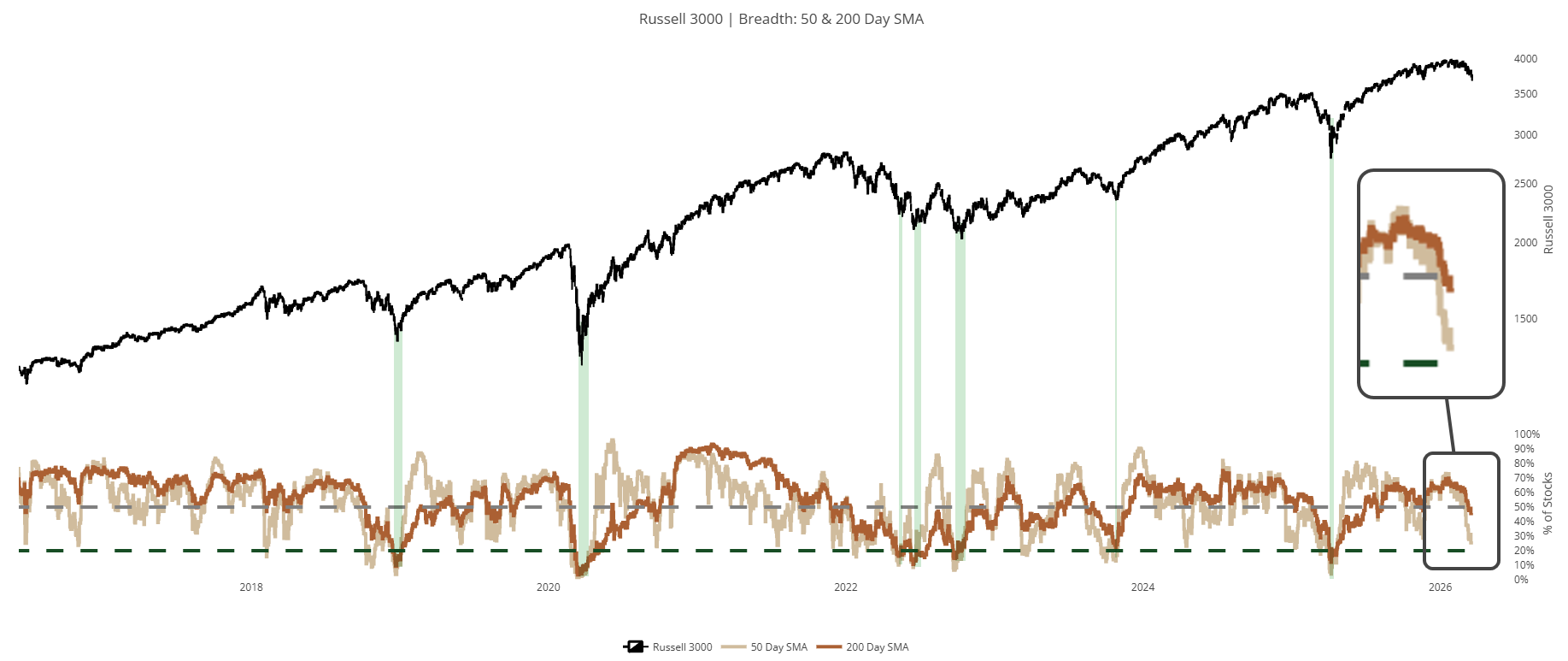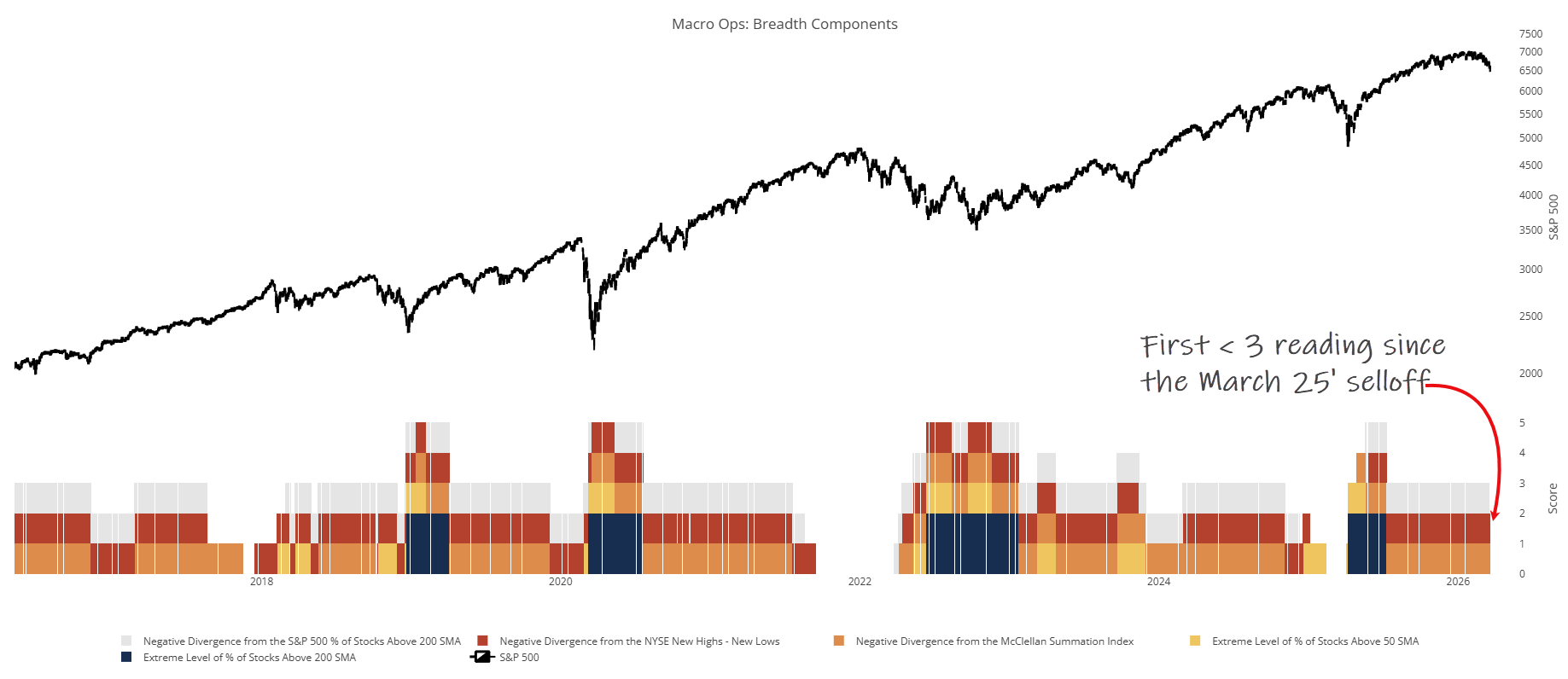 6. Aggregate Breadth Indicator fell to +2 last week — first time since the Mar/Apr 2025 selloff. Not great. If breadth can’t hold here, we’re probably in the early stages of a larger move lower..