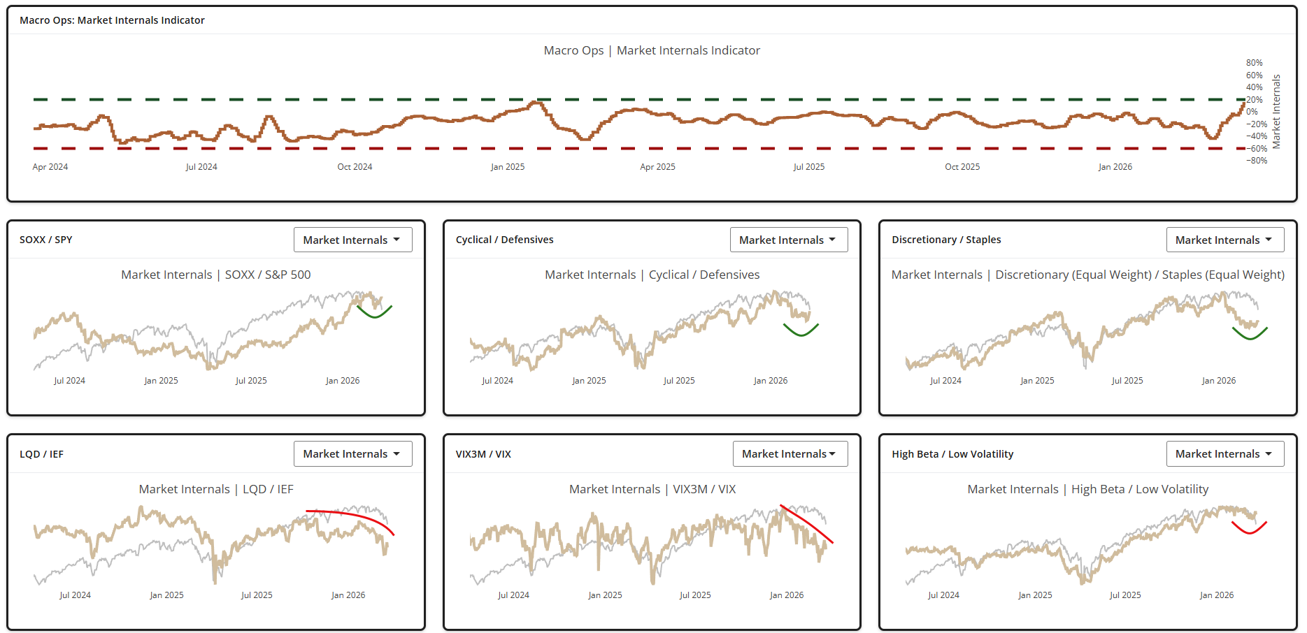 5. Worth keeping an eye on internals — they should lead or at least confirm any real bottom. Starting to see some potentially constructive action in Discretionary vs. Staples, Cyc vs. Def, High vs. Low Beta, and SMH vs. SPX. Too early to call anything, but worth watching.