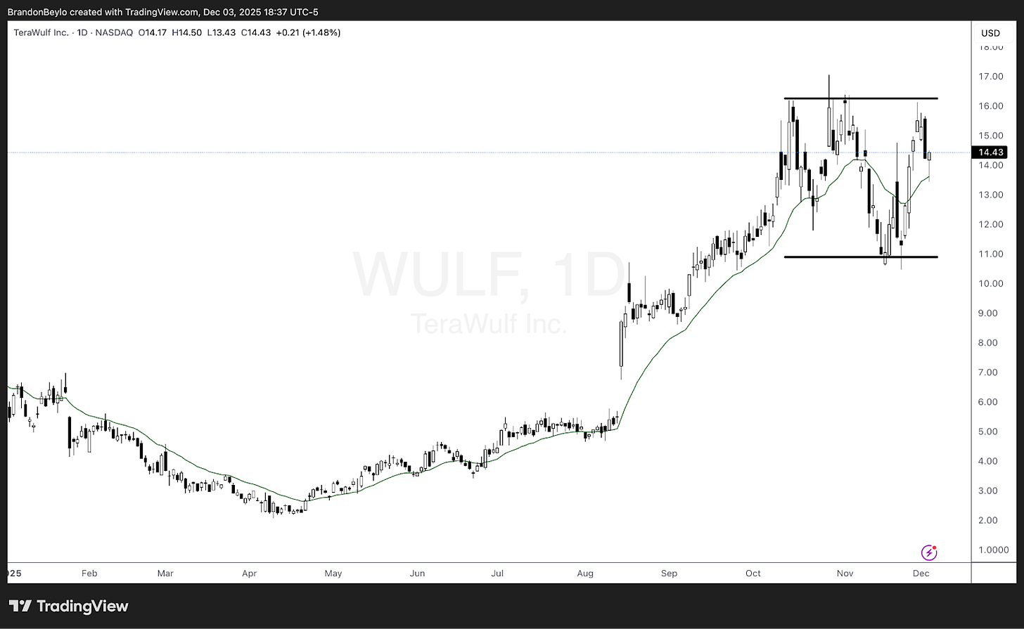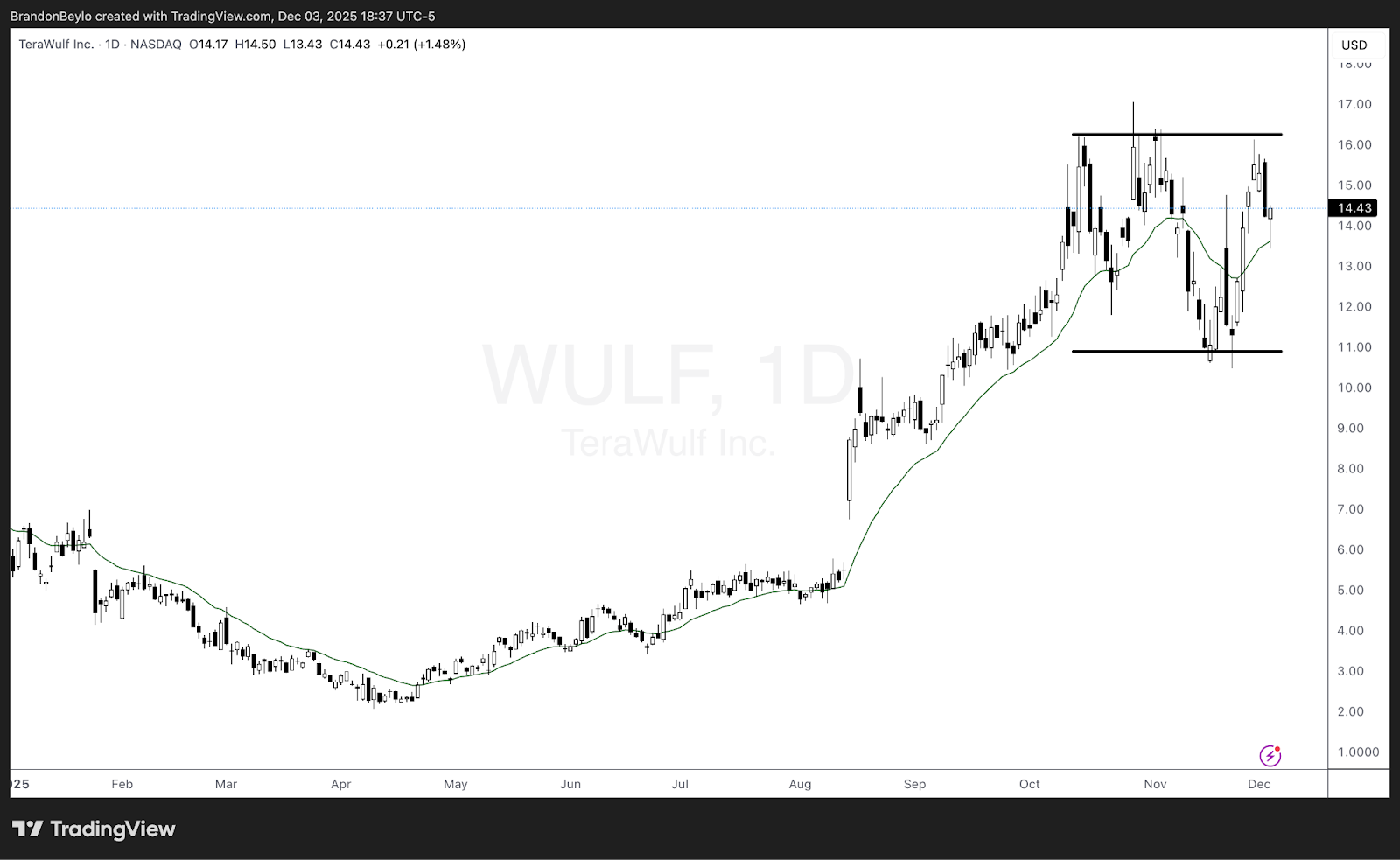 I’ve set alerts at the upper bound of WULF’s rectangle and will buy the breakout.
