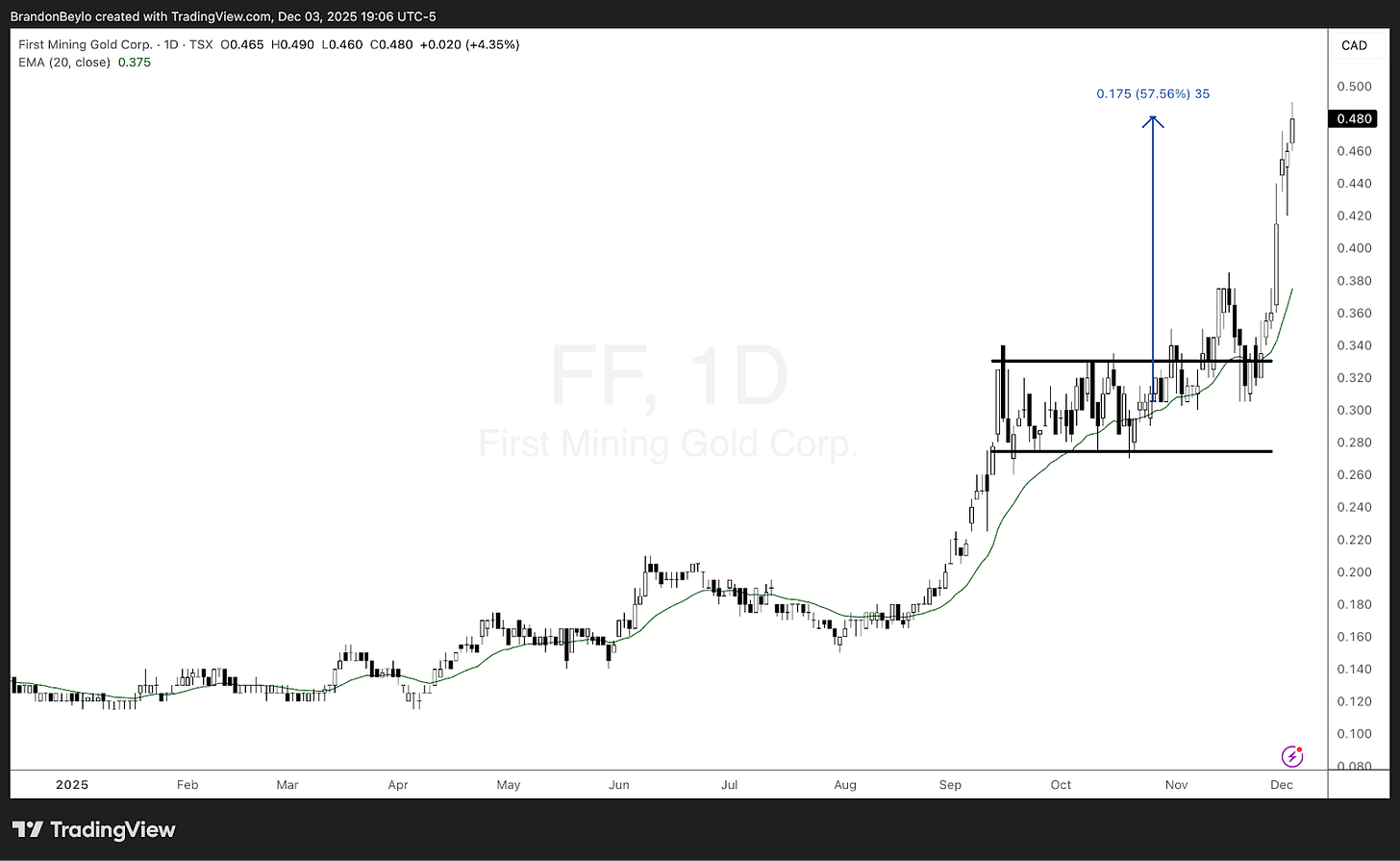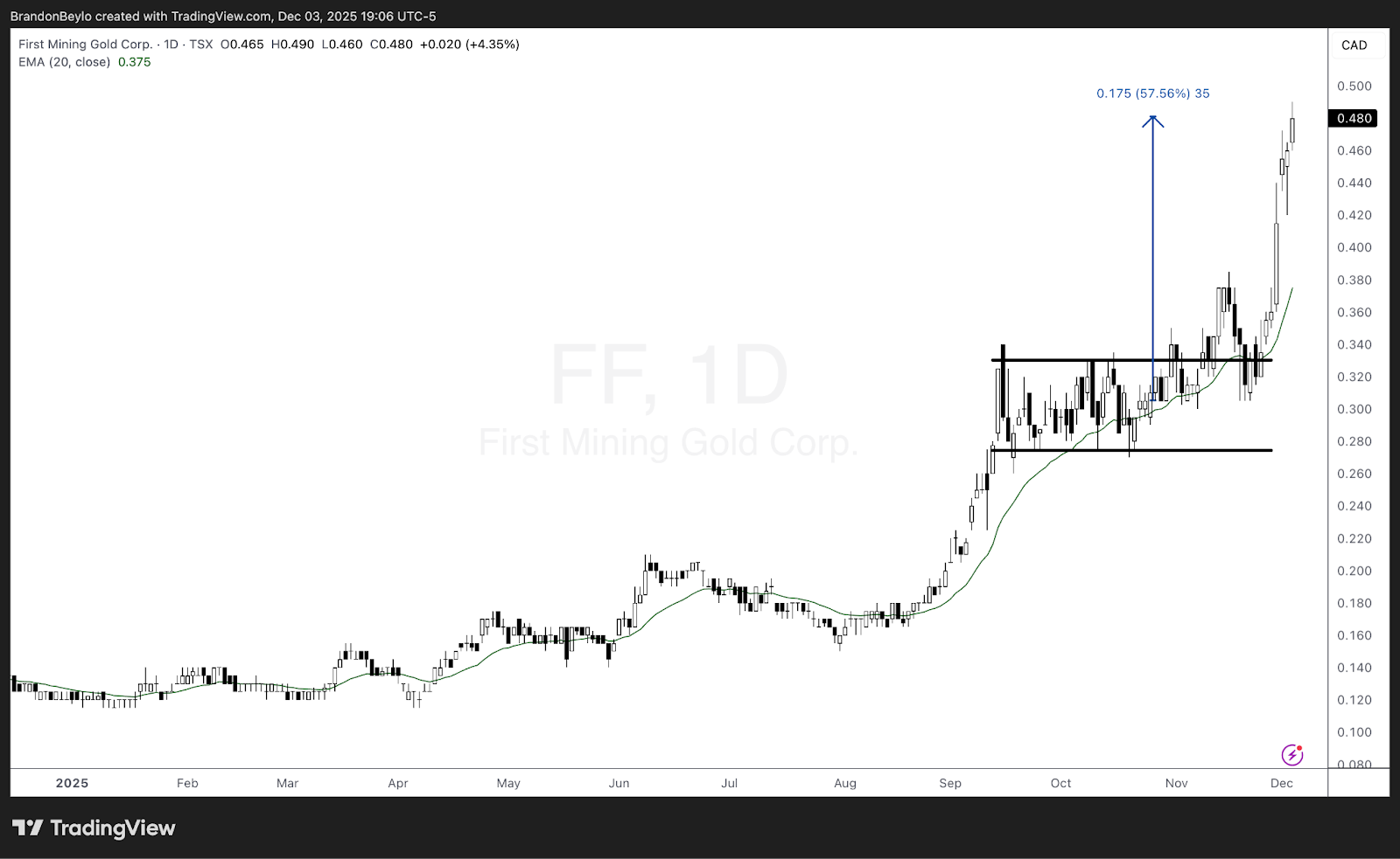FF is up 57% over the past month and now trades at a CAD 600M market cap (see daily chart below).