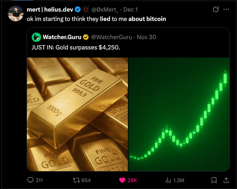 The post got 28K likes and 1.3M impressions. Granted, this is just one tweet. But you don’t see these tweets at market tops. You see them at a cyclical bottom in a secular bull trend.