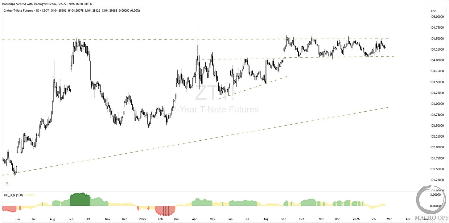 2. We will keep covering this one until there’s movement. The 2yr Notes remain the most compelling setup in markets. We have compression regimes within compression regimes. Translation: a big move is coming. We don’t know which direction yet — so we stay ready for both.