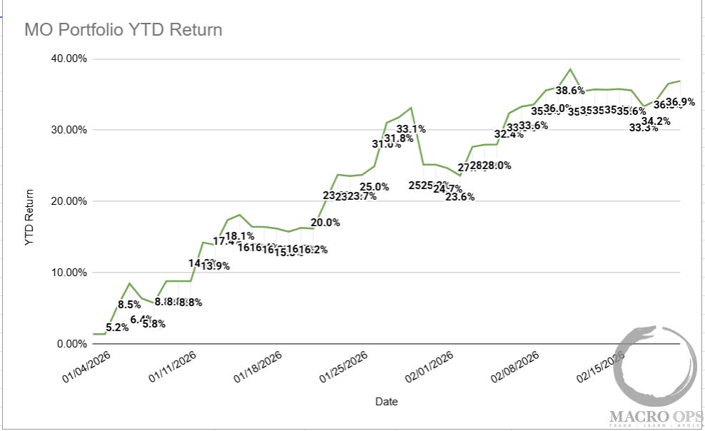 1. The MO portfolio gained +120bps last week, helped by our longs in silver and miners. It’s now up +36.9% ytd, still below its ytd NAV high of +38.6%.