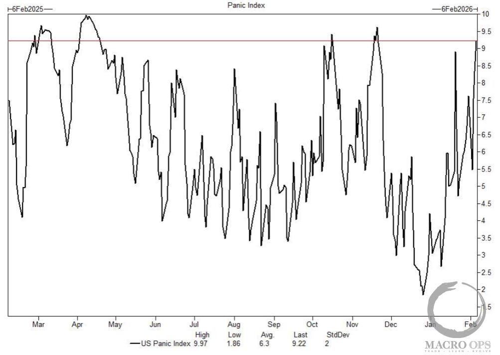 6. GS’s shorter-term measure of panic hit “9.22 based on 1-month S&P implied volatility, VIX volatility, S&P 1m put-call skew, and the S&P term structure slope (1m vs. 3m). These vol metrics indicate that investors are not far off from max fear.” We also have software and crypto at deeply oversold levels where historically, mean reversion comes into play. This market has fuel for another leg higher before rolling over into a larger correction sometime in March.