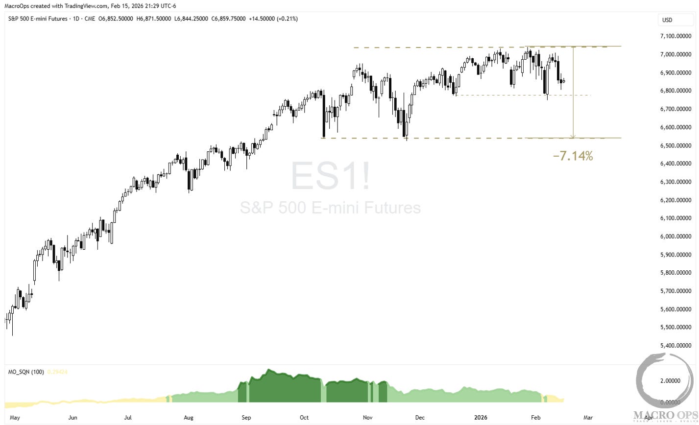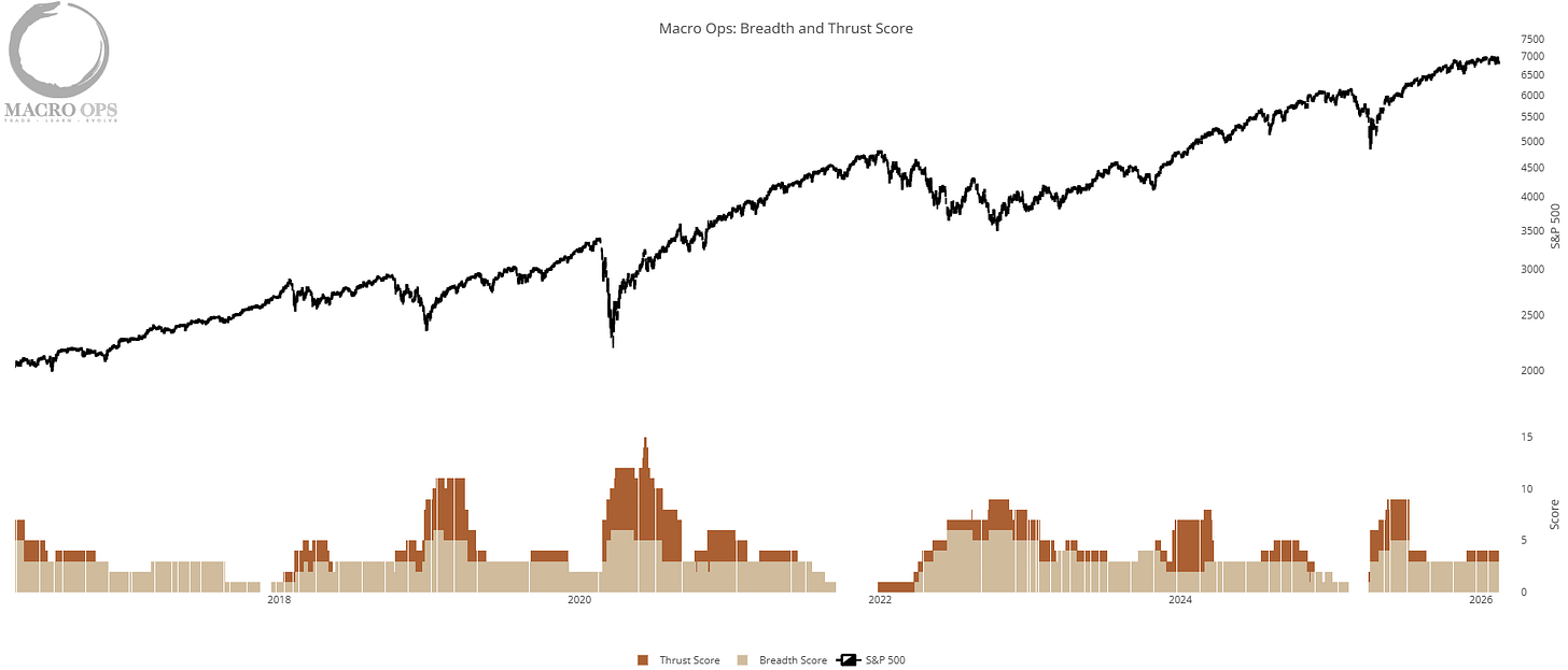5. Our Aggregate Breadth + Thrusts chart remains strong at +4, indicating that weakness is concentrated rather than broad-based. Most of the selling is in tech and software, with the Mag7 in particular starting to weigh on the index.