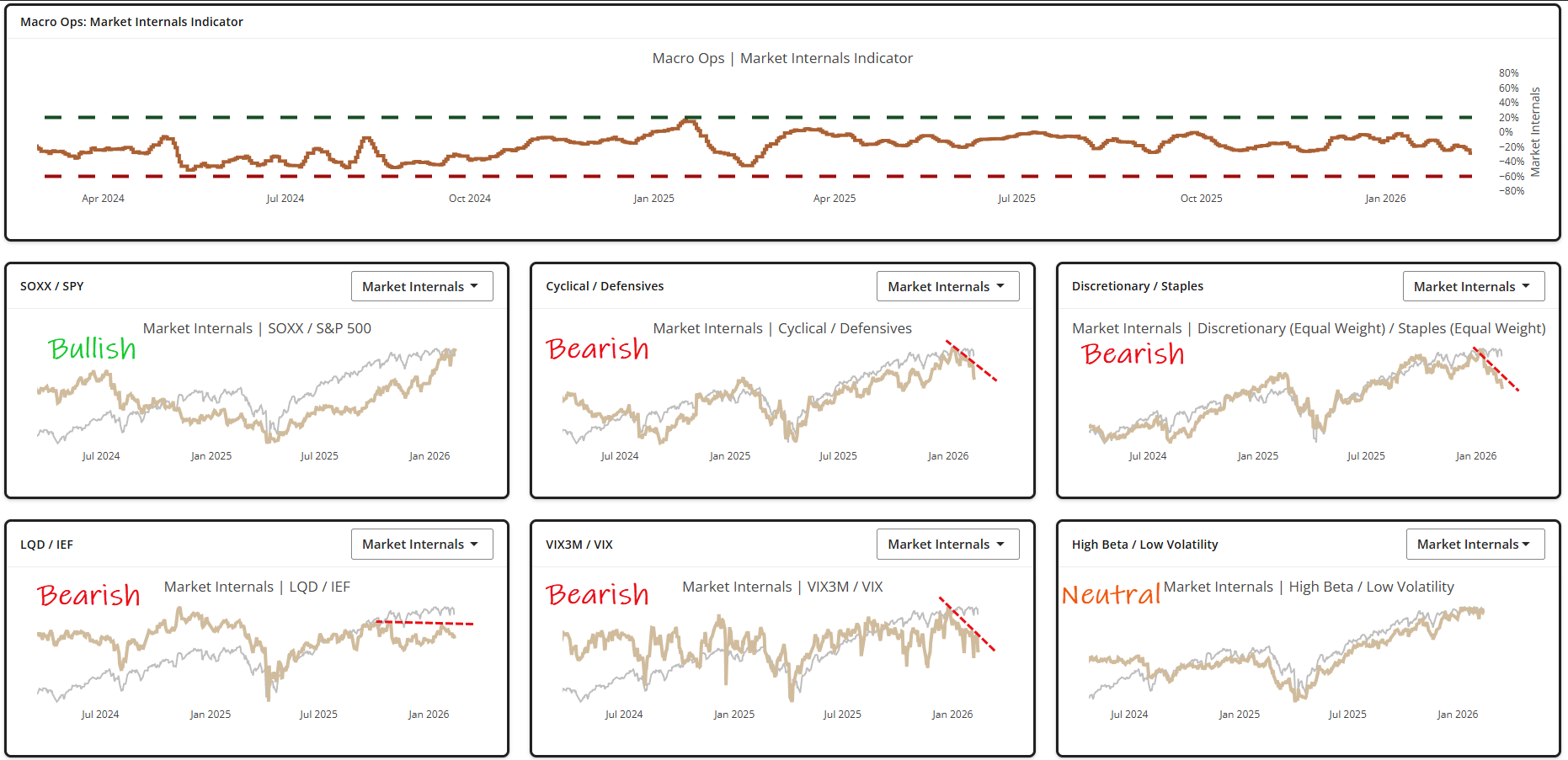 Would it be possible to share how the Market Internals Indicator is weighted? I assume each component (such as STOXX/SPY, Cyclical vs. Defensive ratios, etc.) contributes with a specific weight to the overall indicator. If so, I’d be interested in understanding how those weights were determined and the rationale behind selecting and weighting each metric.