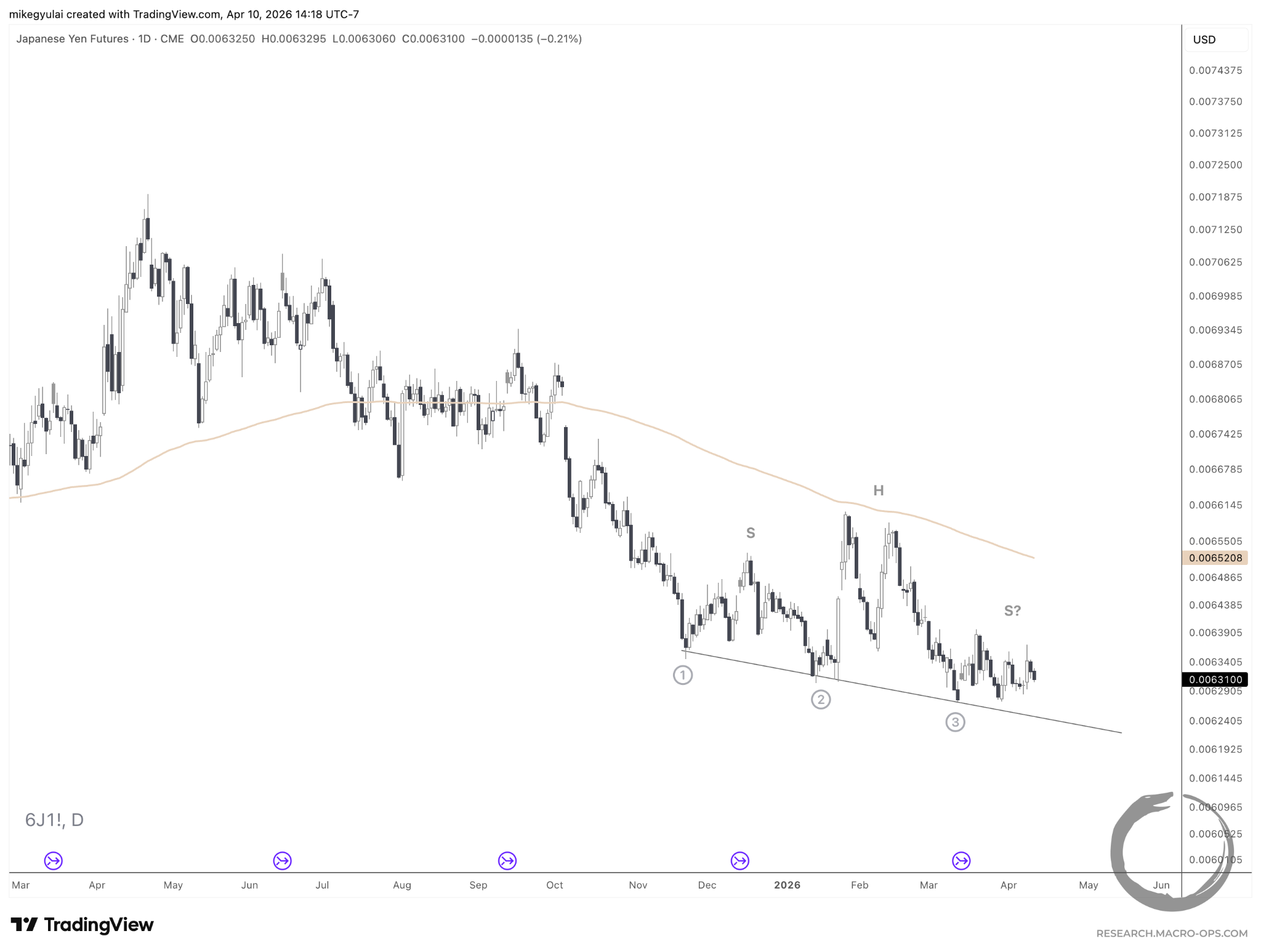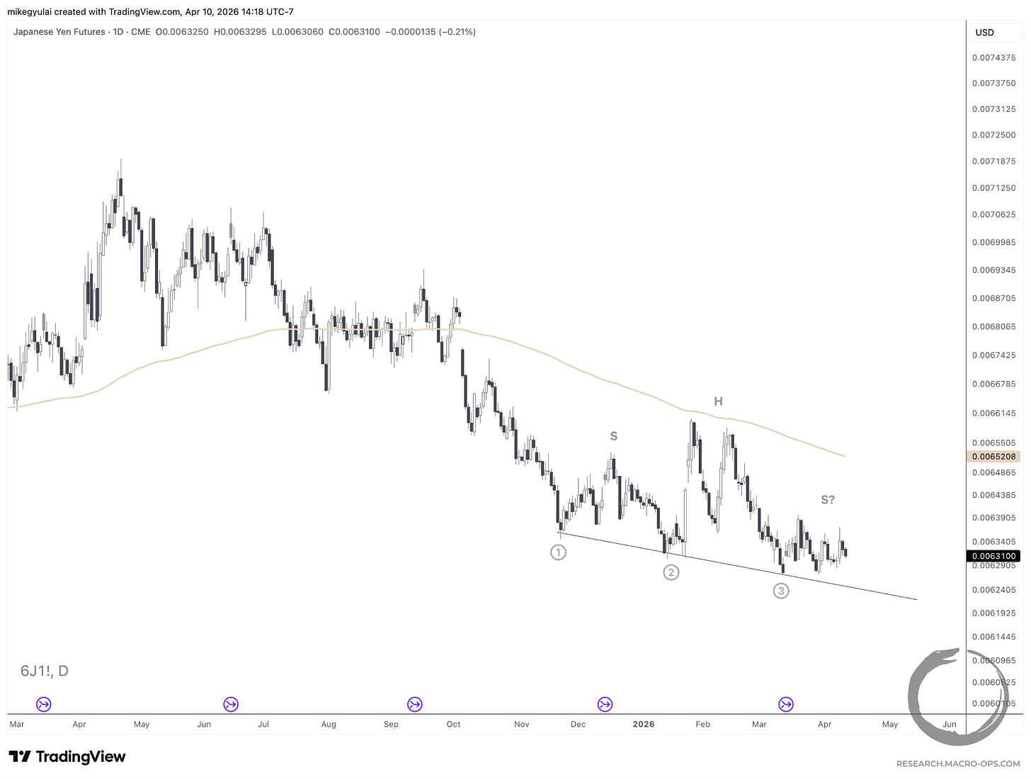 Japanese Yen Futures show a potential Head & Shoulders Continuation on the daily: