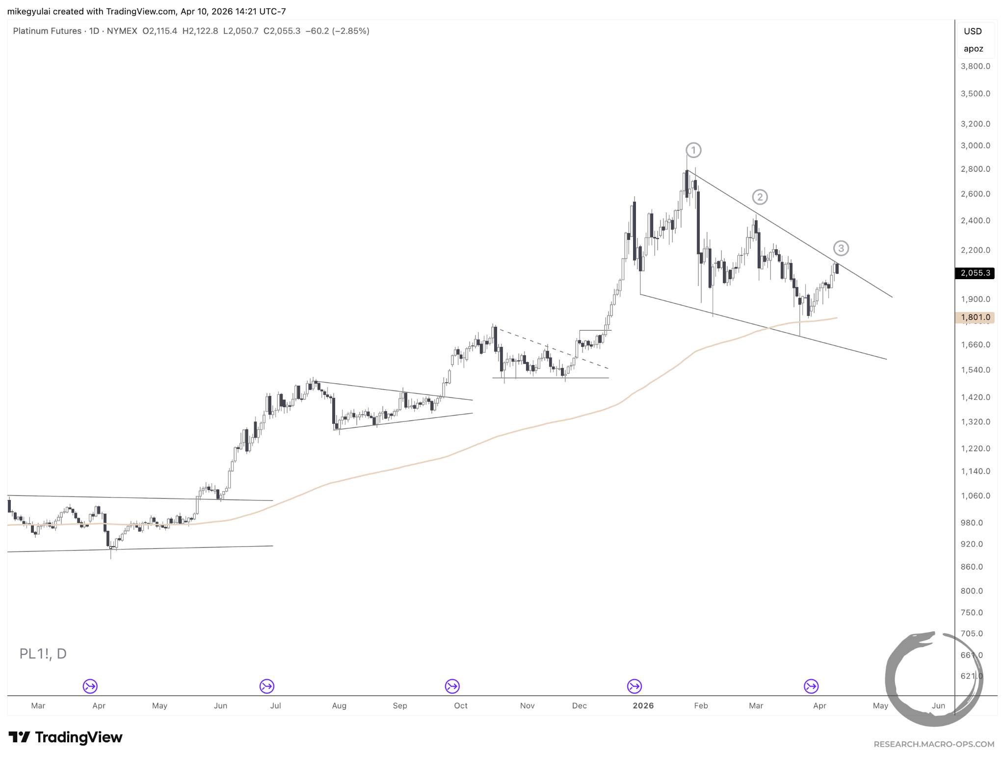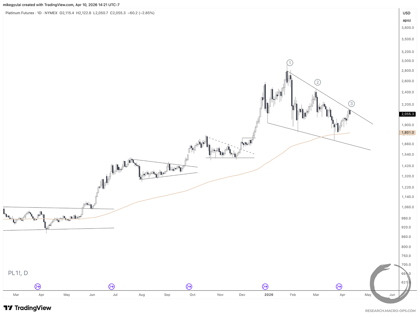 The scale of this Falling Wedge on Platinum is enormous. So much so I question its tradability. Silver exhibits a similar pattern, but the upper boundary on Platinum looks cleaner to me.