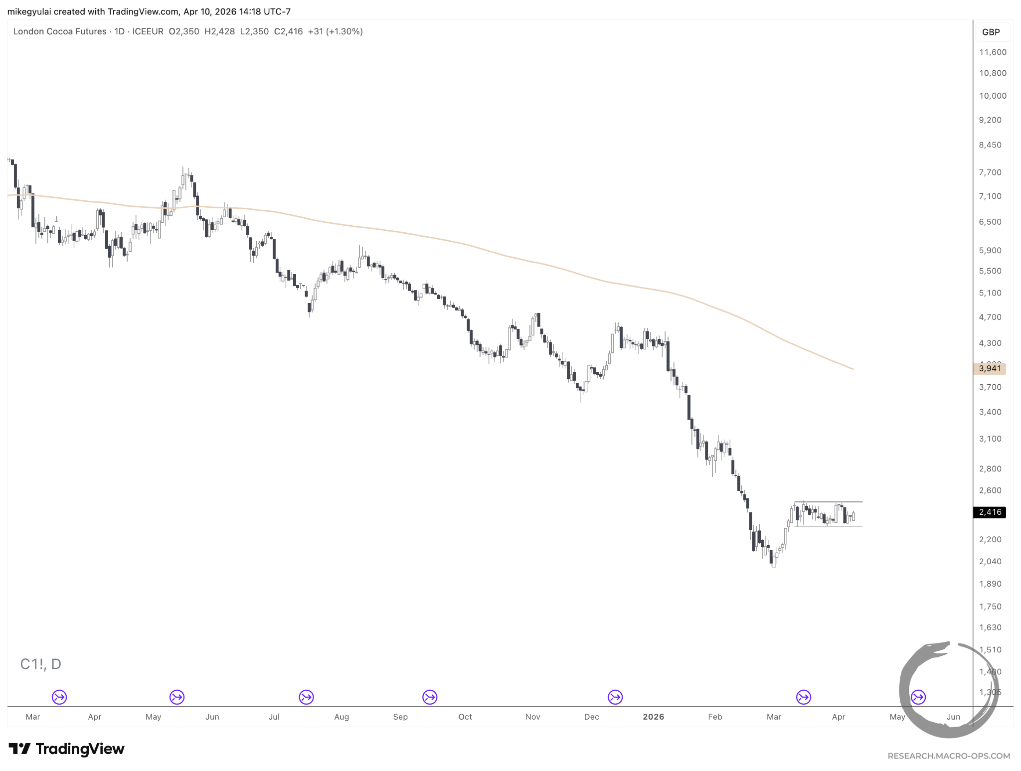 London Cocoa has formed an extremely tight price range between ~2500 and ~2300. Low volatility precedes high volatility …