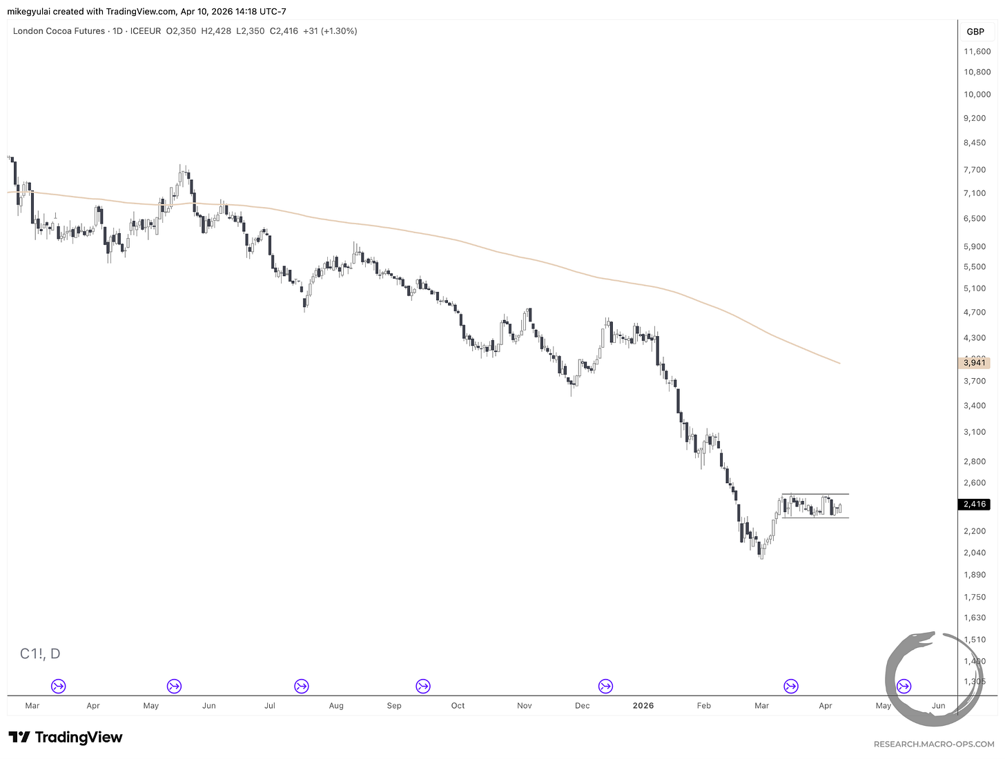 We’re currently long the American Cocoa contract in the Macro Ops Portfolio.