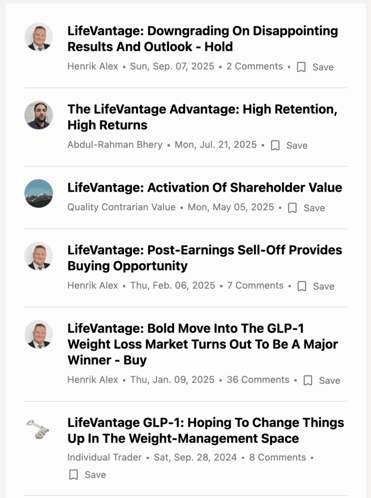 Impressive how LFVN maintains 19% short interest despite strong FCF generation and no debt. The MLM optics angle makes sense as an explainer but that GLP-1 product launch timing is fasinating. Looks like they're trying to ride the wave instead of geting crushed by it, which is smarter than most supplement companies are doing right now.