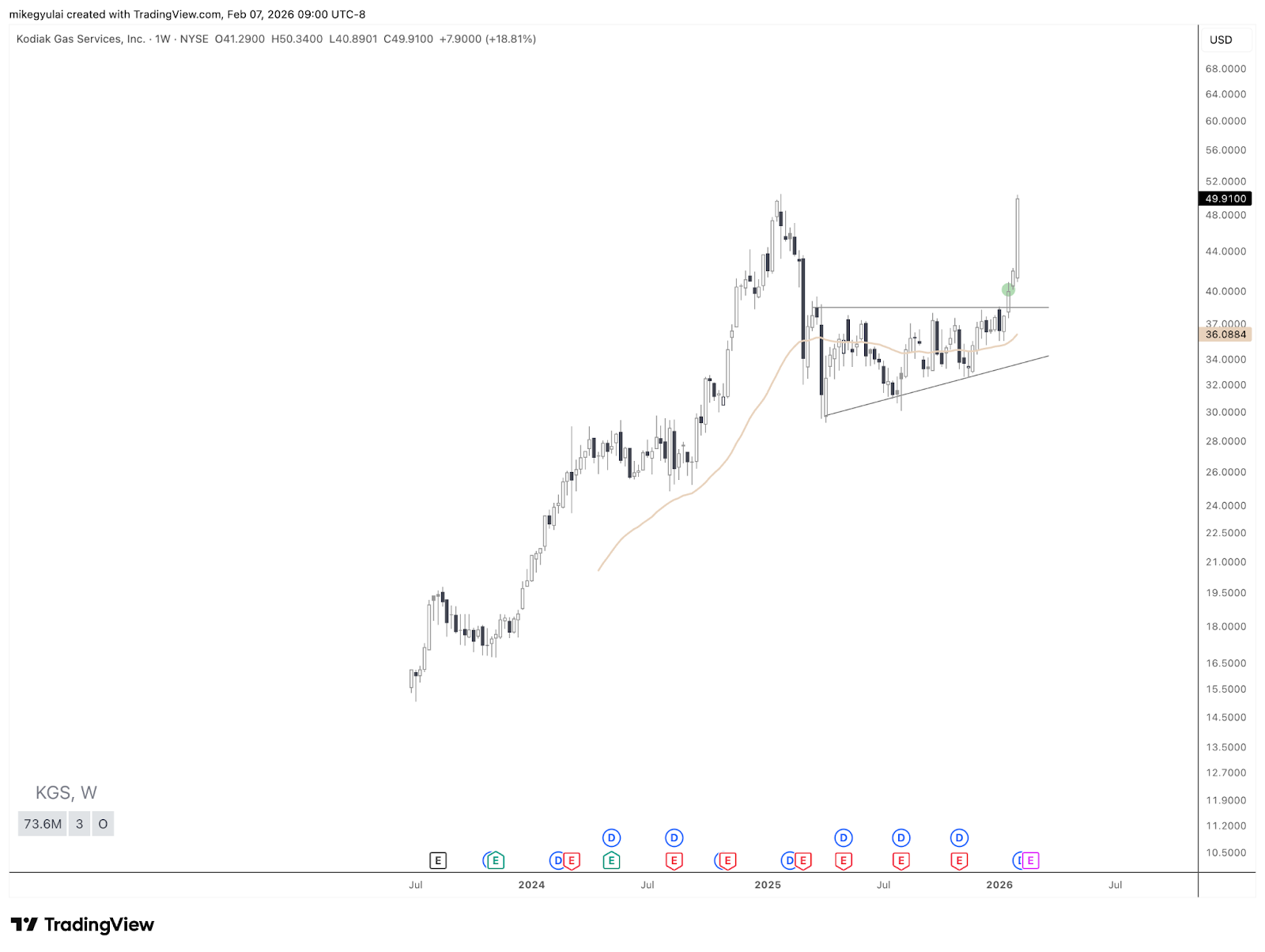 Kodiak Gas Services (Industrial Services) put in a monster week.
