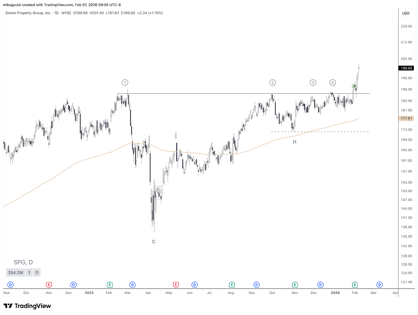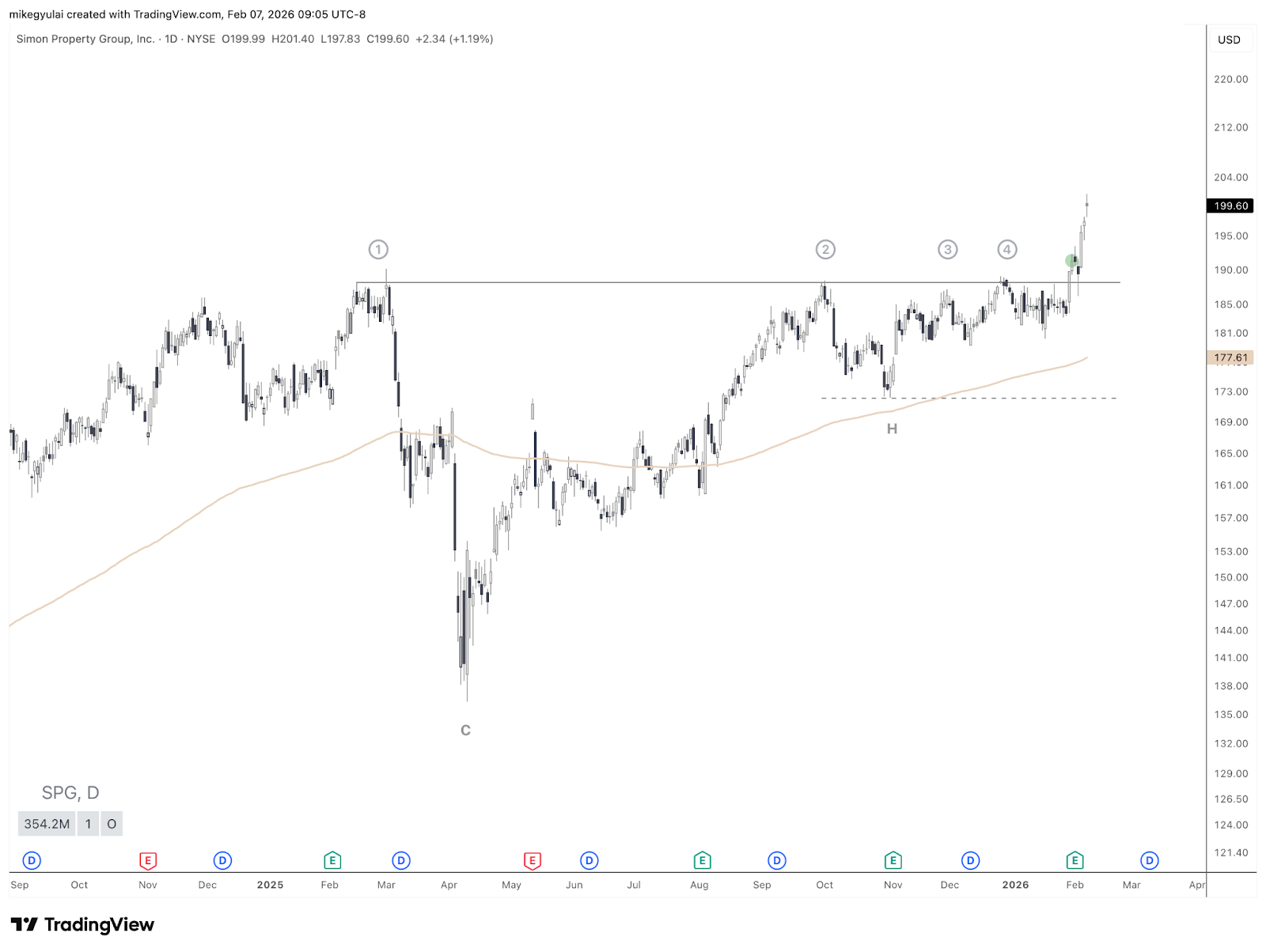 Simon Property Group (Financial Services) kissed its breakout level on earnings and pushed higher the remainder of the week.