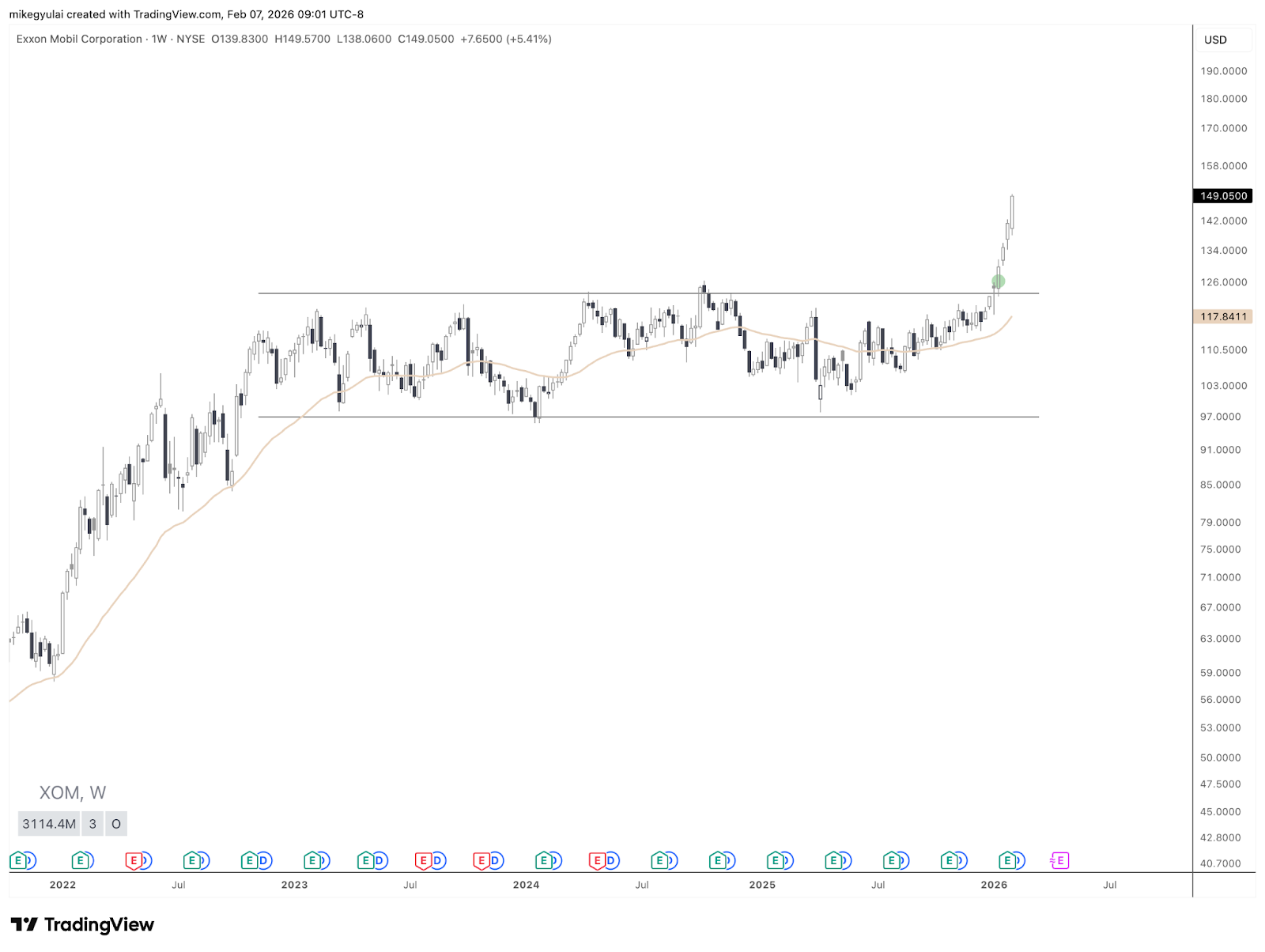 Exxon Mobil (Energy) broke out a month ago and has not looked back.