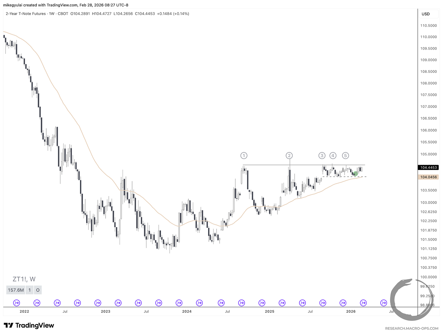 Our team has had a close eye on T-Notes. The 2-Year has been stabilizing above the long-term moving average for a year and half, with volatility compressing into an extremely tight range over the last six months.
