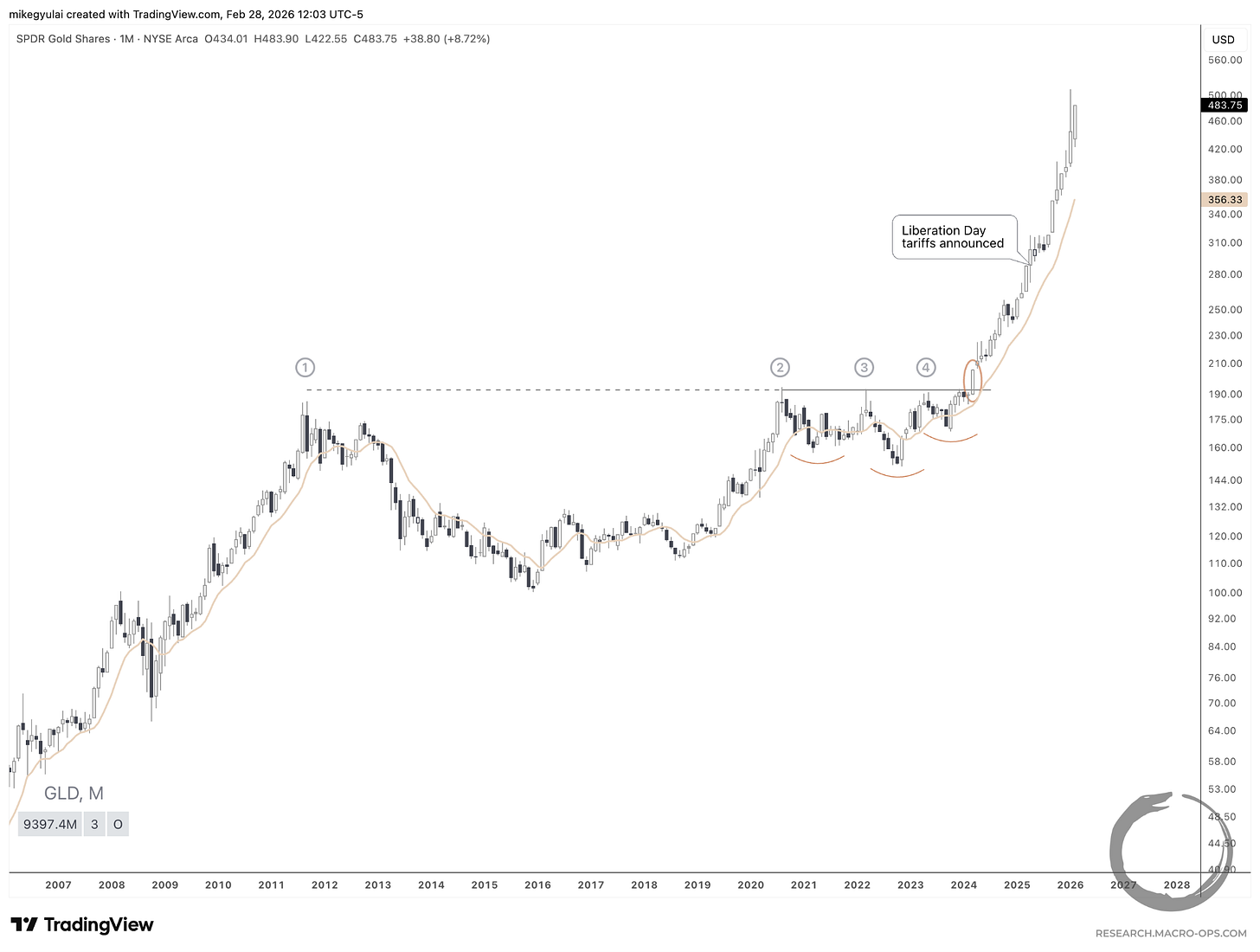 Looking at the chart of gold today, our minds play a trick. They label the entire move explainable by a world of elevated geopolitical tension, policy unpredictability under Trump, and tariff shock.